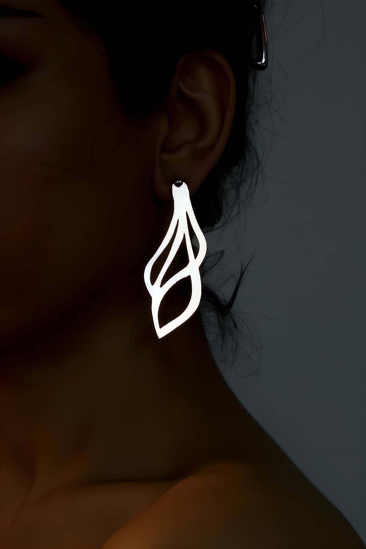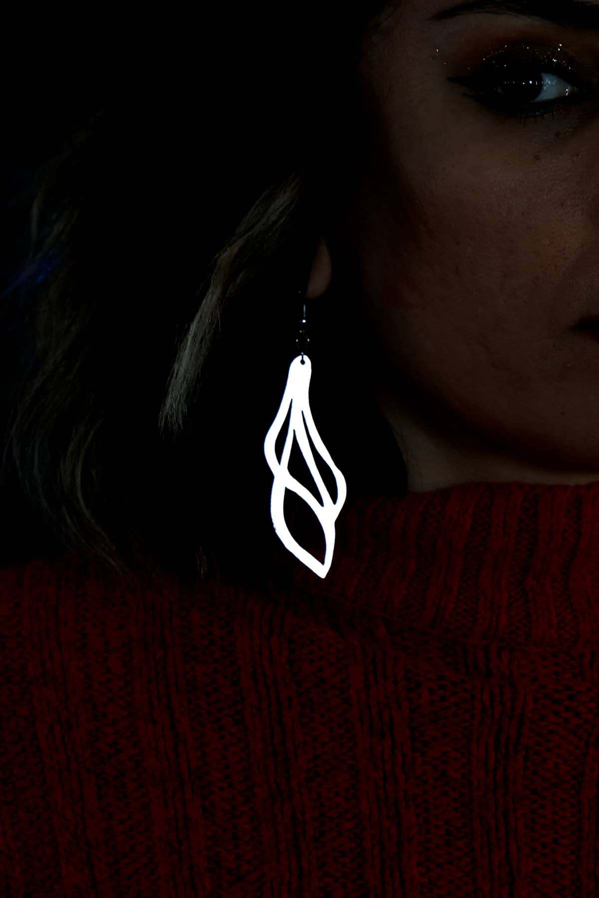 Beyaz Reflektörlü Sallantılı Küpe, Şık Lazer Kesim Küpe - Apbj001