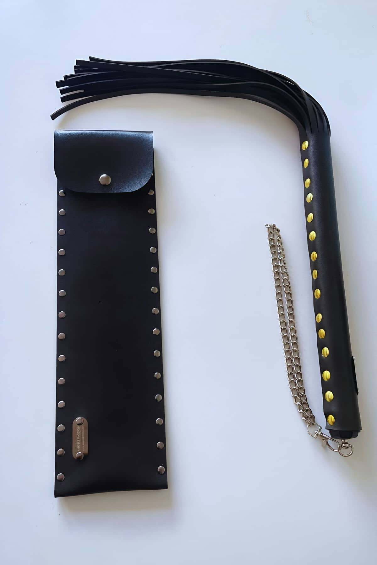 Deri Çantalı Siyah Kırbaç, Şık Deri Kırbaç, Sexy Aksesuar - 1287