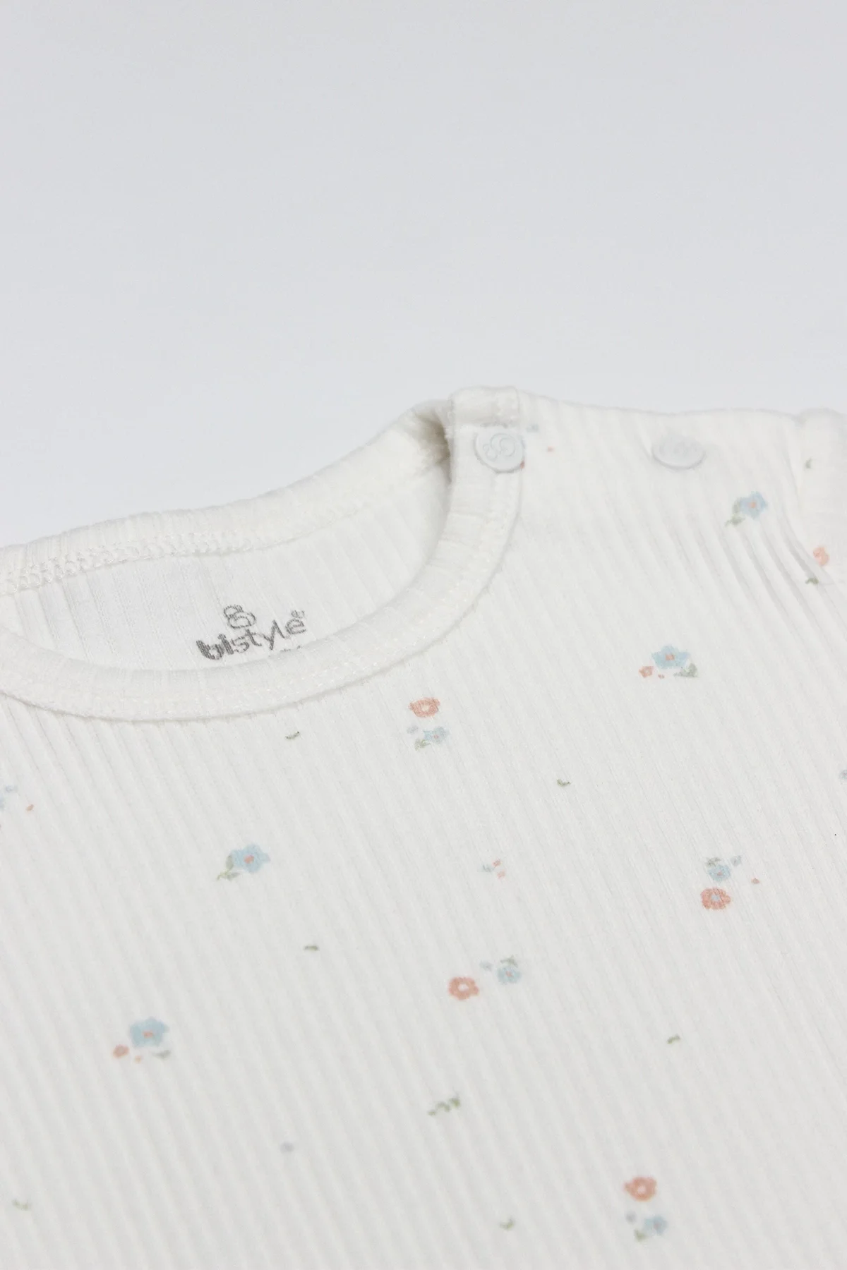 Flying Bloom White Yarım Kol 2'Li Body 17118 Gül Kurusu