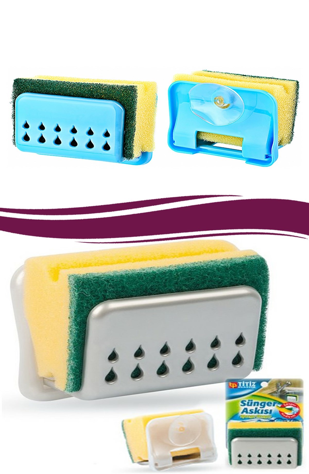 Pratik Mutfak Lavabo Vantuzlu Bulaşık Süngeri Askısı Aparatı