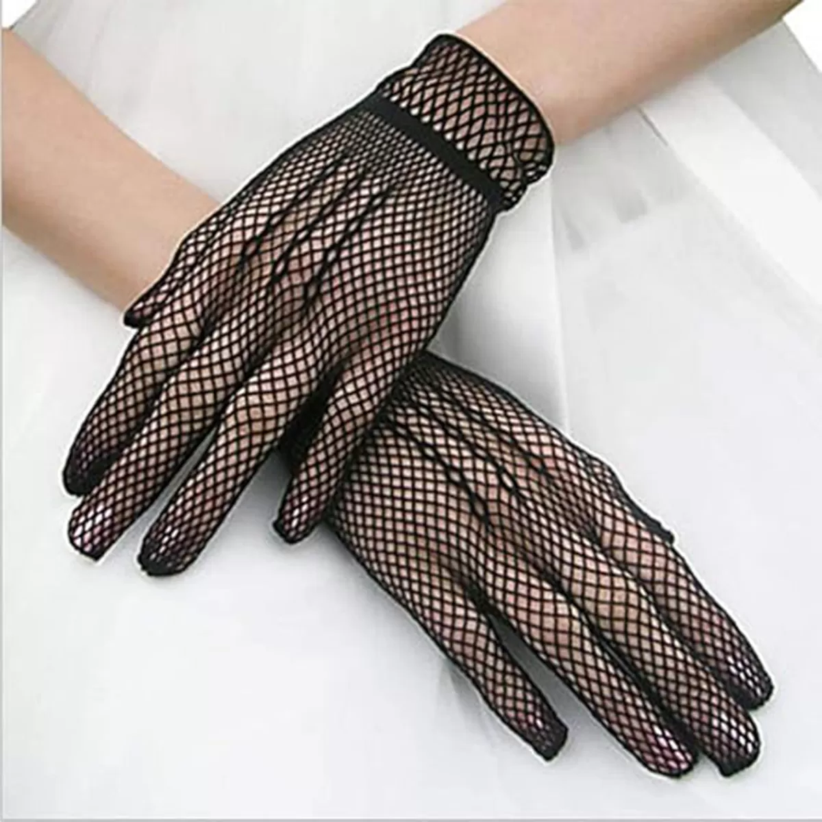Siyah Renk Likralı File Eldiven Parmaklı Örgü Eldiven Yetişkin Boy (4172)