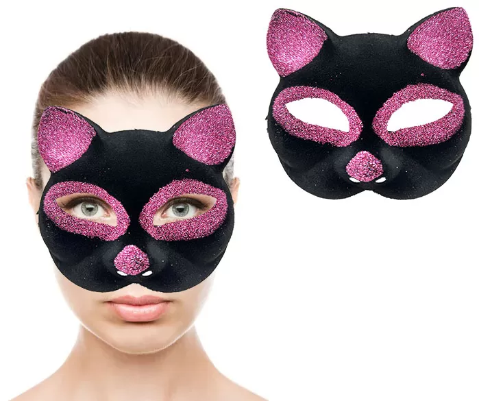 Siyah Renk Pembe Simli Süet Kaplama Kedi Maskesi 18X14 Cm (4172)