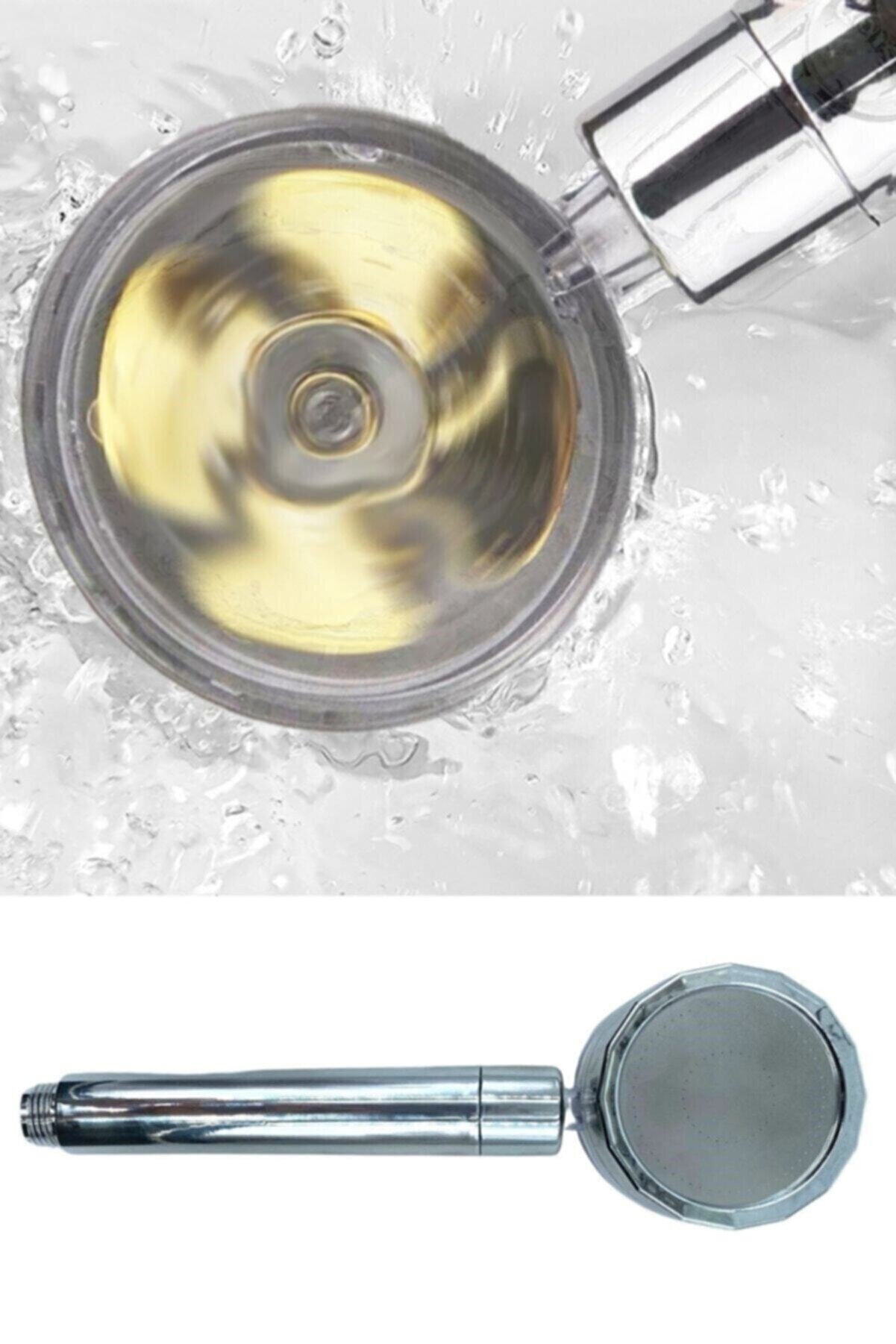 Turbo Duş Başlığı Su Tasarruflu 360 Hareketli Pervaneli Tazyikli Tuşlu Duş Başlığı (4172)
