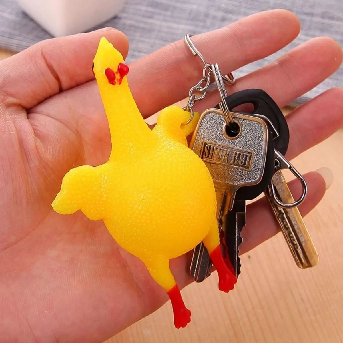 Yumurtlayan Eğlenceli Tavuk Anahtarlık Bu Eğlenceli Anahtarlık, Sıra Dışı Ve Komik Bir Tasarıma Sahiptir. Tavuk Figürü Ile Tasarlanmış Olan Bu Anahtarlık, Kullanıcılara Hem Pratik Bir Anahtarlık Hem De Eğlenceli Bir Oyun Deneyimi Sunar. Ürün Özellikleri: Komik Tasarım: Tavuk Figürü Ile Dikkat Çeken Ve Eğlenceli Bir Görünüm Sunar. Pratik Kullanım: Anahtarlarınızı Güvenli Bir Şekilde Taşımanıza Olanak Tanır. Yumurtlama Efekti: Ürünün Üzerindeki Düğmeye Basıldığında Yumurtlama Efektiyle Eğlenceli Bir Deneyim Yaşatır. Dayanıklı Malzeme: Yüksek Kaliteli Ve Dayanıklı Malzemelerden Üretilmiştir, Uzun Süreli Kullanım Sağlar. Hafif Ve Taşınabilir: Çantanızda, Cebinizde Veya Anahtarlık Askınızda Rahatlıkla Taşıyabilirsiniz. Bu Eğlenceli Tavuk Anahtarlık, Hem Kullanışlı Bir Anahtarlık Olarak Işlev Görürken Hem De Lük Hayata Biraz Eğlence Katmak Için Ideal Bir Seçenektir. Yumurtlama Efektiyle De Kullanıcılarına Keyifli Anlar Yaşatır.